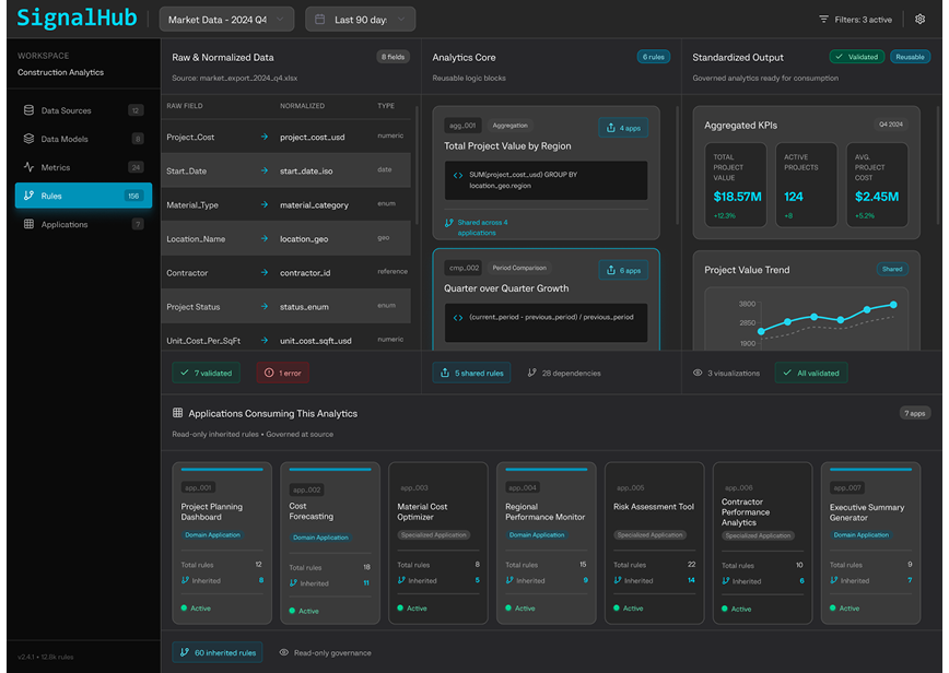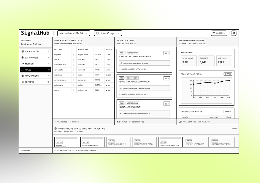 Computools developed SignalHub, a centralized analytics framework designed to bring structure, consistency, and reuse to construction market data across all analytical applications.